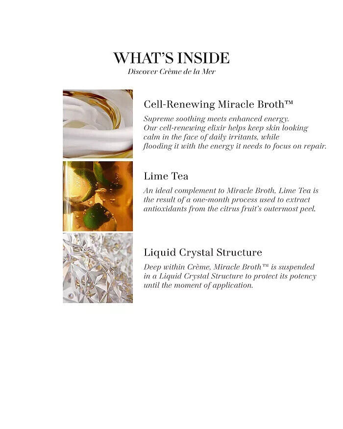 With a heart of cell-renewing Miracle Broth™, this ultra-rich moisturizer delivers healing moisture and energized repair. Instantly, sensitivities look soothed. Dryness disappears. And, with daily devotion, skin feels firmer, looks more lifted and lines and wrinkles are visibly diminished for renewed radiance and rejuvenation. In just hours, skin feels firmer, looks smoother & more radiant.